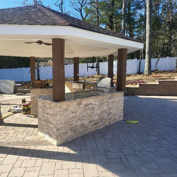 At On Time Paver Installers, we can help you create a customized outdoor kitchen that is perfect for your backyard space and cooking requirements. You can opt for a very simple and basic outdoor kitchen with some nice seating and a small dining table, or you can take it to another level by adding a beautiful countertop, a sink, an oven, a barbecue grill, and even a fire pit.